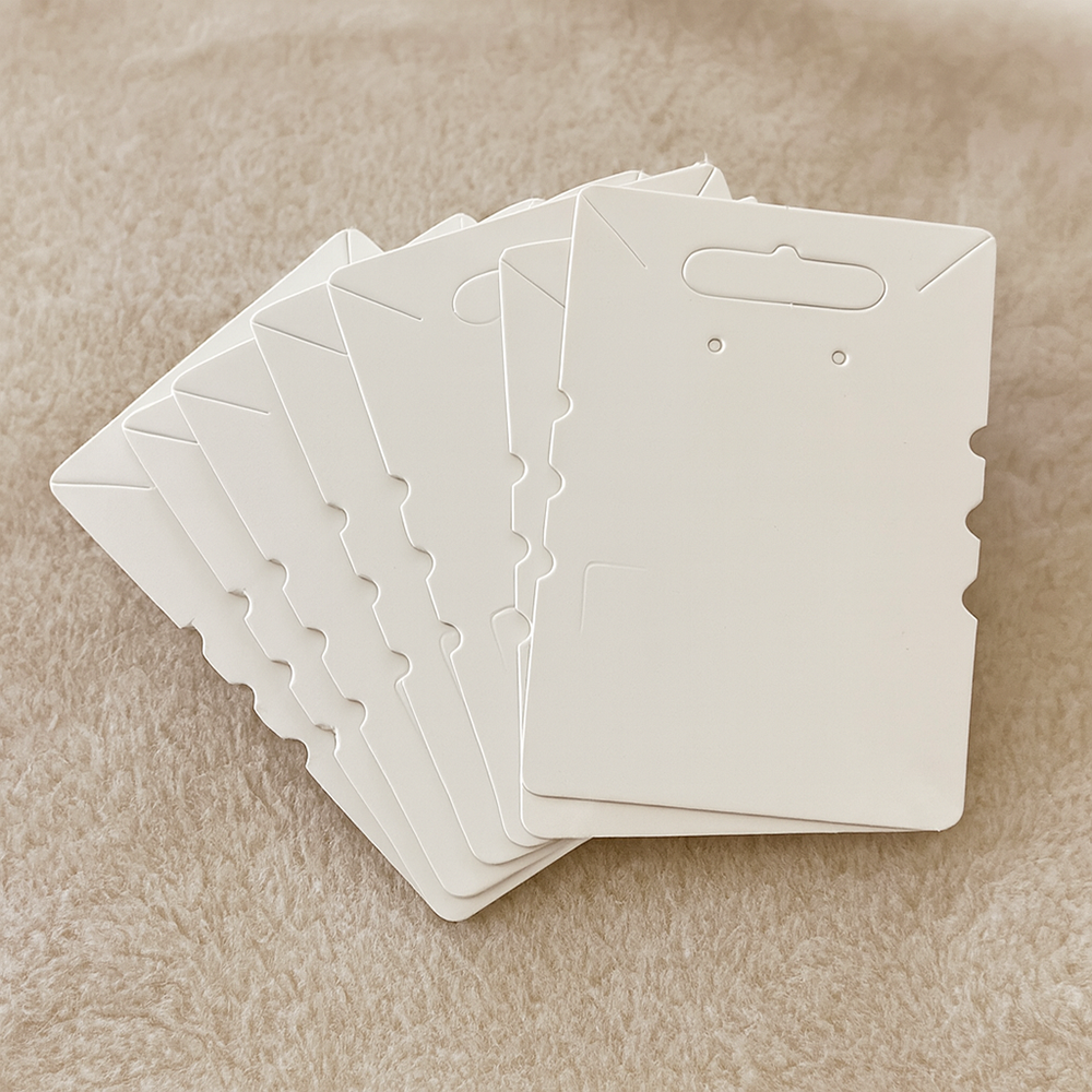 Present your jewellery with elegance using our Jewellery Cards with Indents. These 6.8x9.8cm cards are perfect for showcasing necklaces, bracelets, earrings, and more. Each card features carefully designed indents to securely hold your jewellery in place, ensuring a professional and polished display. Available in packs of 1 or 25, these cards are ideal for both personal use and retail settings. Made from high-quality, durable material, they provide a sturdy base for your pieces while enhancing their visual appeal. Whether you're preparing for a craft fair, organising your collection, or creating gifts, our Jewellery Cards with Indents offer a stylish and practical solution.