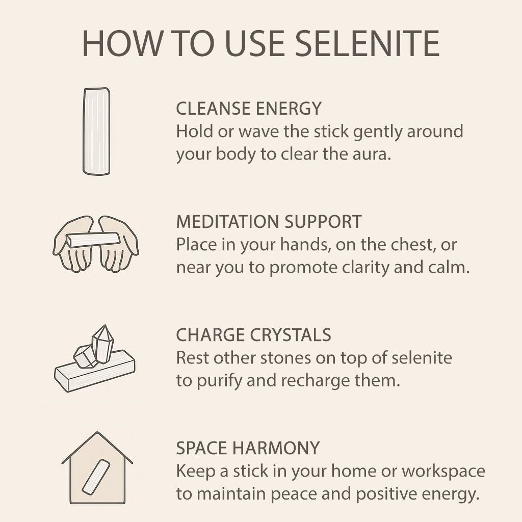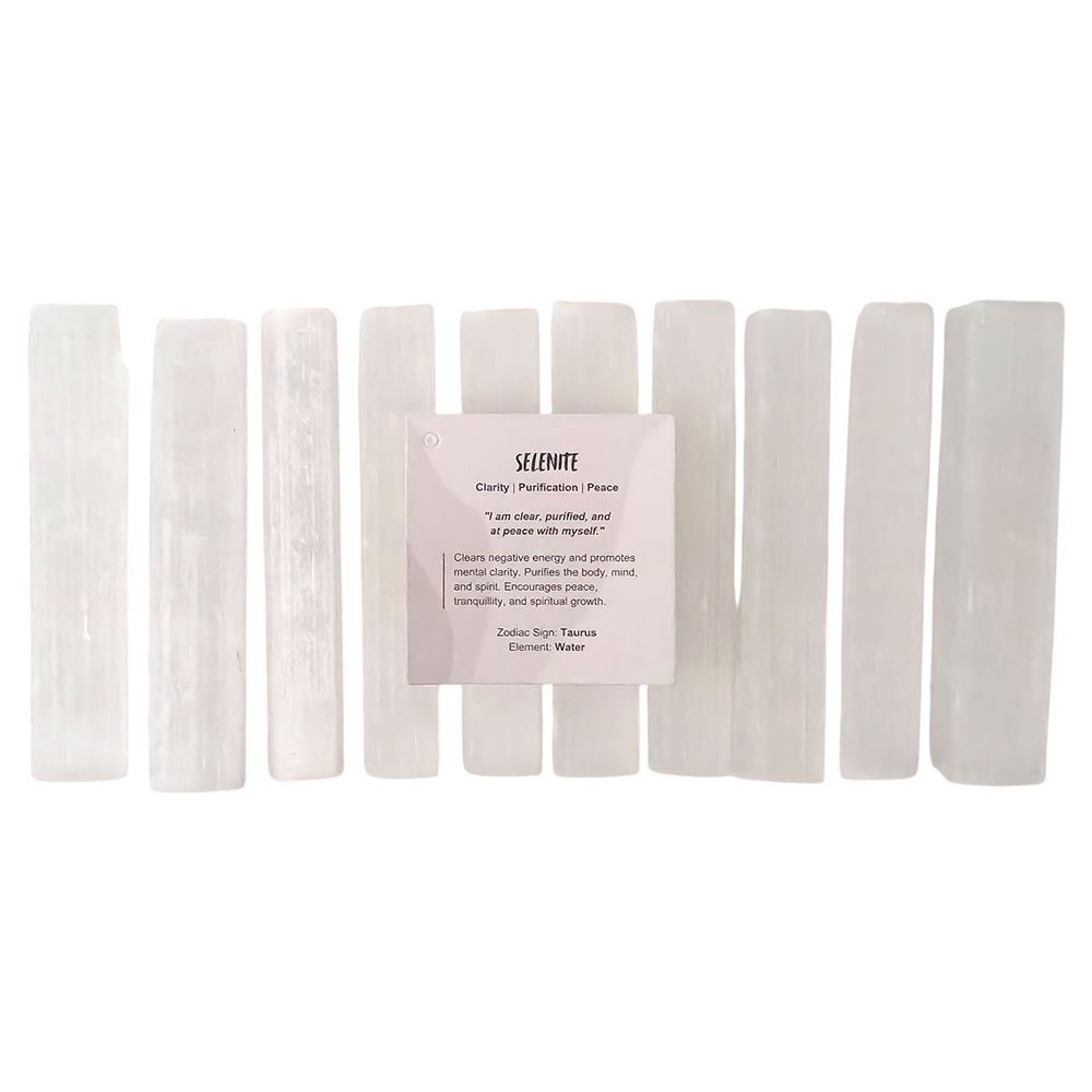 Carved from luminous selenite, these straight wands are designed to support energy clearing, meditation and crystal work. With a sleek form and polished finish, each wand is ideal for directing energy, placing on altars, or using in healing rituals. Selenite is widely known for its ability to cleanse other crystals and promote spiritual clarity.
