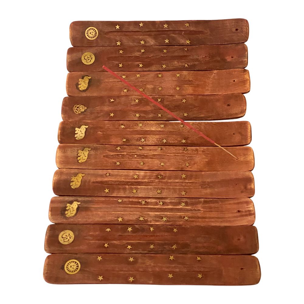 Wooden Incense Holder with Assorted Golden Designs, 25cm